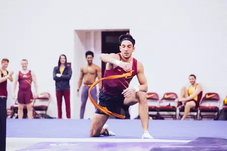 To round out the top three, alumni Steve Jaciuk (2015) and Zach Liebler (2017) combined for an extra special routine that earned a 14.000. Jaciuk's performance included ribbon twirling and a serenade for judge Brian Meeker, a Gopher alumnus (1982).