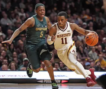 Any long shot the Gophers had of shocking the Spartans was lessened significantly when starters Amir Coffey (shoulder) and Dupree McBrayer (shin) were again held out of the lineup. Coffey has missed 10 of the last 12 games. McBrayer, after playing through the pain for several weeks, sat out for the second straight time.