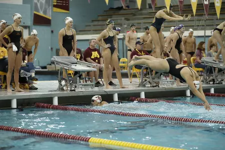 COLUMBUS, Ohio - A pair of school records were broken Wednesday at the opening night of the 2018 Big Ten Women's Swimming and Diving Championships. New times were written into the Minnesota record books following second place finishes in the 200-yard medley relay and 800-yard freestyle relay races.