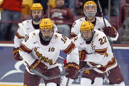 Minnesota (19-13-2 overall, 10-10-2-1 Big Ten) is now unbeaten in the last four games (3-0-1) and is now 6-1-1 in the last eight contests. With the team saluting it senior class today, the Maroon & Gold also are unbeaten in the last 10 regular-season home finales (8-0-2).