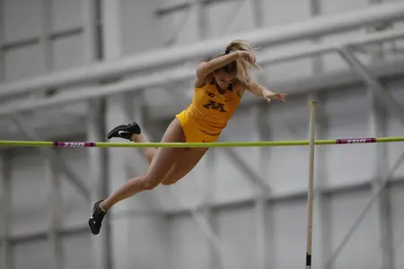 GENEVA, Ohio - Karlie Place finished as pole vault runner-up and the No. 10 Minnesota women's track & field team scored points in all six possible events as the Golden Gophers competed on day one of the Big Ten Conference Indoor Track & Field Championships at the SPIRE Institute in Geneva, Ohio, on Friday.