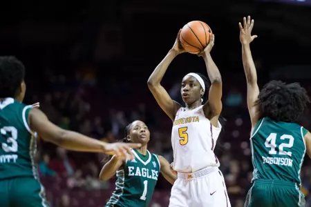 Bello had 10 points and a career-high 16 rebounds, which tied for the most by a Gopher this year along with freshman Destiny Pitts' 16 boards vs. Boston College on Nov. 19. Of Bello's 16 rebounds, 12 came on the offensive end. In addition to posting her third double-double of the season and the fourth of her career, Bello had five steals and matched a career high with three blocks.