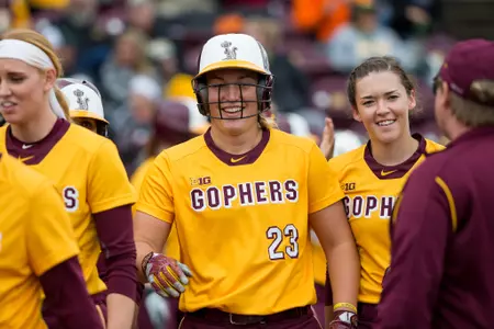 Sophomore MaKenna Partain and Kendyl Lindaman as well as senior Dani Wagner led the Golden Gopher offense on day one. Partain in the leadoff spot went 4-for-6 collecting a triple, three RBI and scored twice. The Lindaman home run tracker is in full force as the All-American sent two out on her 4-for-7 day that included three RBI. Wagner led the middle of the order going 4-for 6 with a double, two runs and three RBI.