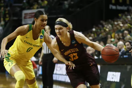 EUGENE, Ore. - The No. 10 seed Minnesota women's basketball team saw its run in the NCAA Tournament come to an end in the second round, its best finish in nine years, after a 101-73 loss to second-seeded Oregon (32-4) Sunday night in Eugene, Ore.