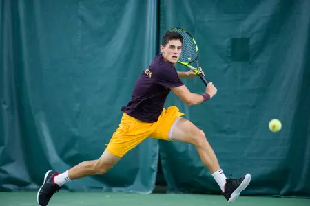 The Maroon & Gold controlled the pace on four of six singles courts during the first set, and Corwin came back to force a third set after dropping the first at #1 singles. Alpeza would be the first to score a point for the Gophers as he battled for a 7-5 first set win and closed it out a bit more handily at 6-2 in the second set over Andrew Redding. No. 81 Stefan Milicevic gave the Gophers a 3-0 lead with a 6-1, 6-4 win at #3 singles over Tabrizi.