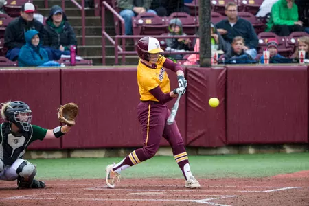 EAST LANSING, Mich. - A late sparking offense and strong pitching led Minnesota softball to avenge a game one loss taking the second half of a twin bill 6-2 at Secchia Stadium in East Lansing. Minnesota (21-14, 4-3 B1G) dropped the opener to host Michigan State (14-19, 2-6 B1G) 3-2 after the Spartans belted the go-ahead home run in the sixth.