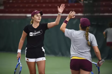 Two doubles teams lead the way for the Gophers with a 4-1 record in the spring season. The No. 1 duo of Caitlyn Merzbacher and Cammy Frei have looked strong at the top of the lineup with their only loss coming in their most recent match with the Memphis Tigers. Similarly, the No. 2 combo of Tina Kreinis and Tiffany Huber have yet to drop a doubles match since their season opener against the now #5 UCLA Bruins. Overall, the Gophers boast a 13-4 dual doubles record across the four cycling doubles pairings.