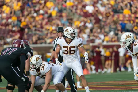 2016 • SOPHOMORE?SEASON: Played in all 13 games • recorded 45 tackles with a team leading 7.5 sacks and one forced fumble • earned one Big Ten Defensive Player of the Week Award and was named Holiday Bowl Defensive Most Valuable Player • honored with team's Gary Tinsley Award, as the player who best embodied the underdog spirit of the late former Gopher Gary Tinsley • Academic All-Big Ten. Game-by-Game: Recorded two tackles against Oregon State • saw action against Indiana State • made one tackle playing against Colorado State • competed against Penn State • registered a career high three tackles against Iowa • registered first career sack for a loss of seven yards against Maryland • saw action against Rutgers • made one tackle against Illinois • had a career day against Purdue with five tackles, three tackles for a loss of 11 yards and two sacks • had the only sack of the game for the Gophers and four tackles against Nebraska • led the Gophers in tackles with ten including two sacks and a forced fumble against Northwestern and was named Big Ten Defensive Player of the Week • had four tackles including 1.5 for a loss of nine yards and a half of a sack against Wisconsin • named Holiday Bowl Defensive Most Valuable Player after recording 12 tackles, two tackles for loss and one sack.