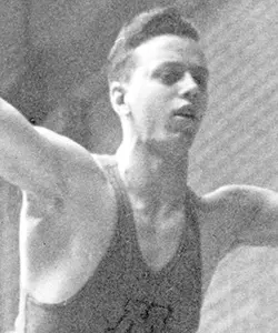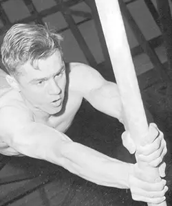 The men’s gymnastics team is runner-up in the NCAA Championships. Newt Loken (all-around - left) and Delver Daly (still rings - right) win national titles.