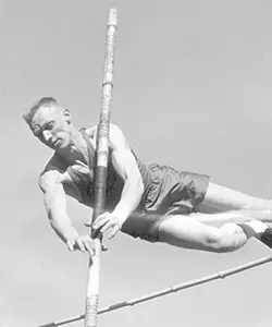Jack DeField (pole vault - left) and Bob Fitch (discus - right) win Minnesota’s first NCAA track and field titles.