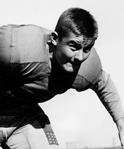 Linemen Leo Nomellini (left) and Clayton Tonnemaker (center) are named consensus All-Americans. The duo, along with multi-sport star Bud Grant (right), are all selected in the top 14 of the NFL Draft the following spring.