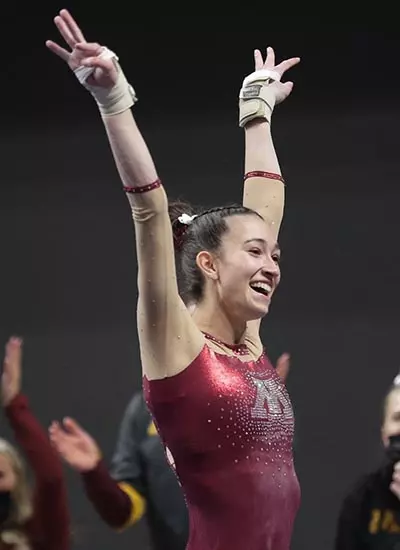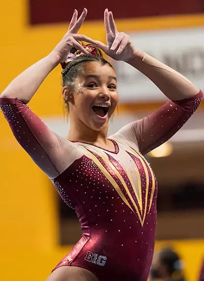 One of the most decorated gymnasts in Minnesota program history, Hooten walks away with 17 Big Ten weekly awards, 13 All-America honors, six Big Ten individual championships, five All-Big Ten awards, four Big Ten All-Championships Team honors, three Academic All-America accolades and an NCAA Regional Title.