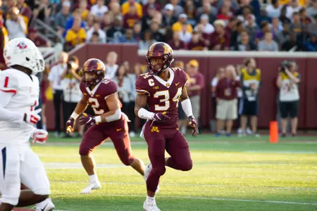 2017 • JUNIOR SEASON: Started 10 games this season • fourth on the team with 64 tackles (44 solo) and deflected four passes. Game-by-Game: Started against Buffalo and recorded a team leading 10 tackles including one for a loss and had two pass breakups • tallied eight tackles against Oregon State • notched four tackles including one for a loss against Middle Tennessee • made 11 tackles including one for a loss against Maryland • tallied three tackles and one pass breakup against Purdue • recorded five tackles against Michigan State • missed the Illinois and Iowa game with an injury • notched five tackles and one sack at Michigan • registered six tackles against Nebraska • tallied four tackles against Northwestern • led the team with eight tackles against Wisconsin.